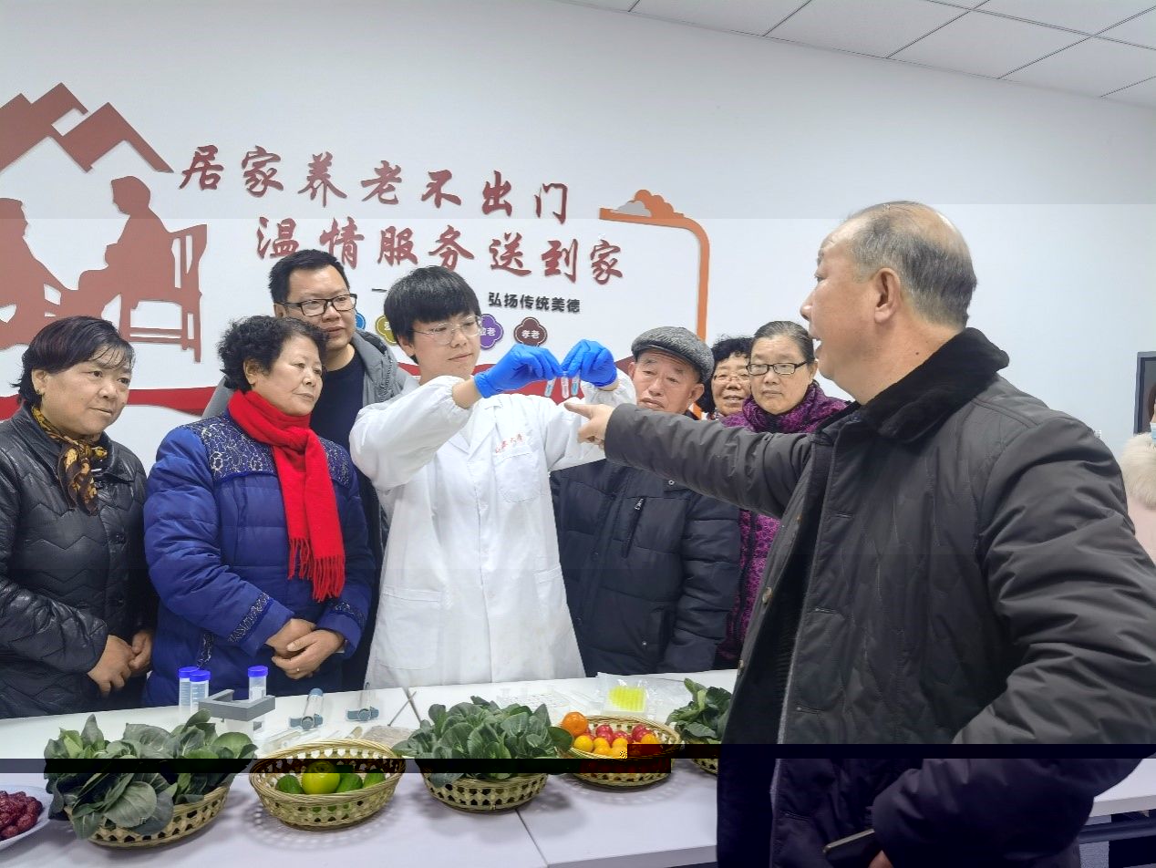 大學生們利用所學專長為居民演示并講解用顯色反應法和比色法,檢測蔬菜、水果農藥殘留的方法,宣講相關的蔬果安全知識,守護“舌尖上的安全”。
