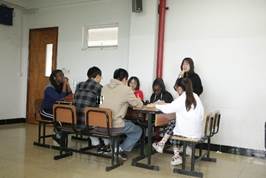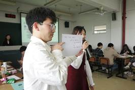 活動開始,兩位主持人首先對此次活動主題進行了簡單介紹。之後,同學們被分成5個小組,主持人引導大家介紹組内成員的姓名,随後邀請每組的一位同學向大家介紹他本組成員。