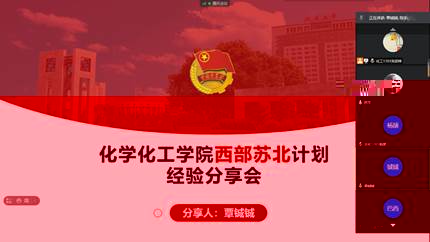本次經驗分享會采用線上會議的方式,覃铖铖講述了自己參與項目的初衷、項目面試經驗、工作心得與感悟等,并針對“參加西部計劃是否可以自己選擇服務地區”、“西部計劃面試會問什麼問題”、“參加西部計劃需要準備些什麼”等同學們最關心的問題,覃铖铖一一作解答。覃铖铖同學于畢業當年通過西部計劃來到新疆生産建設兵團,紮根基層,把自己最美好的青春年華獻給了祖國的基層崗位。如今,他已經完成西部計劃服務期,并成功考取新疆生産建設兵團的公務員。會議最後,他留下了自己的聯系方式,并表示願意随時幫助大家答疑解惑。