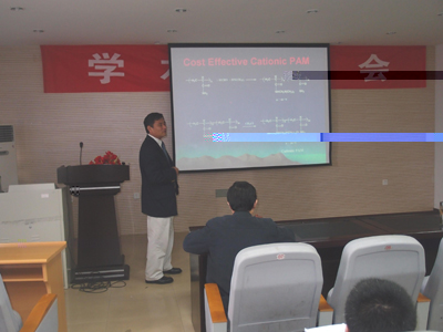afternoon, Dr. Naijie Zhang, a principal scientist of Pepsi Co. gave a splendid report on Water Soluble Polymers - Synthesis and Application. During the seminar, he introduced the recent research progress in synthesis and application of water soluble polymers. Dr. Naijie Zhang provided